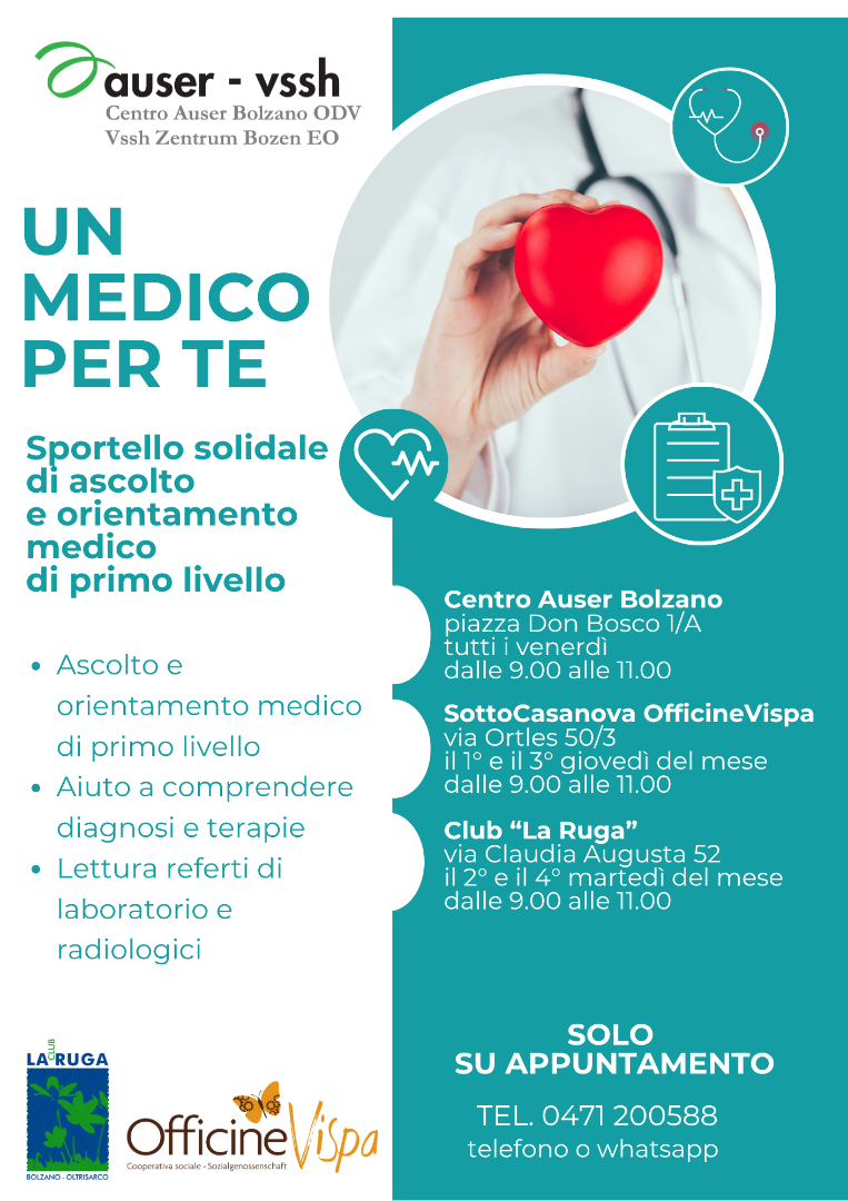 - Centro Auser Bolzano, piazza Don Bosco 1/A - tutti i venerdì, dalle 09:00 alle 11:00
